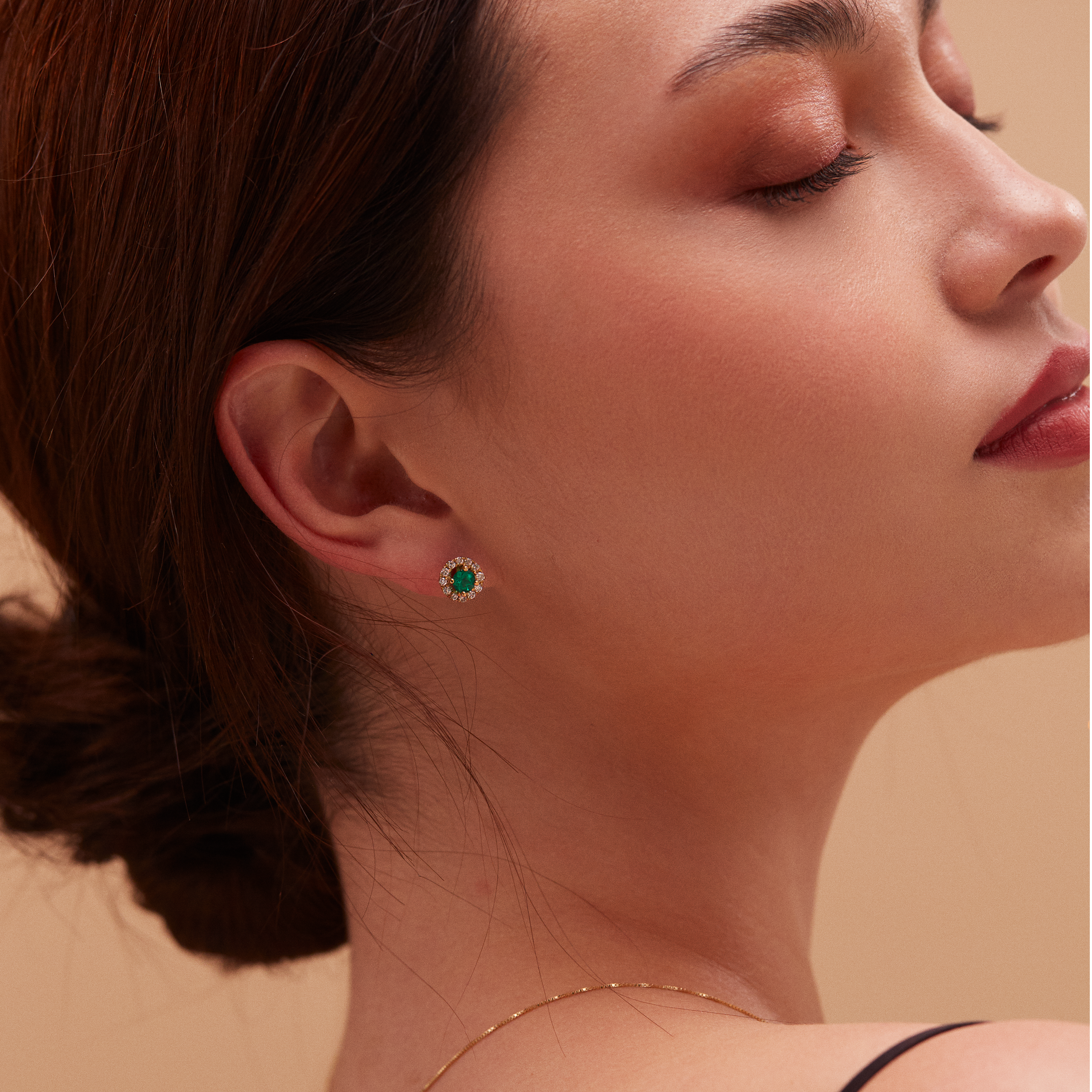2 Natural Emeralds – 0.30 carat weight, 28 Diamonds – 0.28 carat weight, 18k Yellow Gold