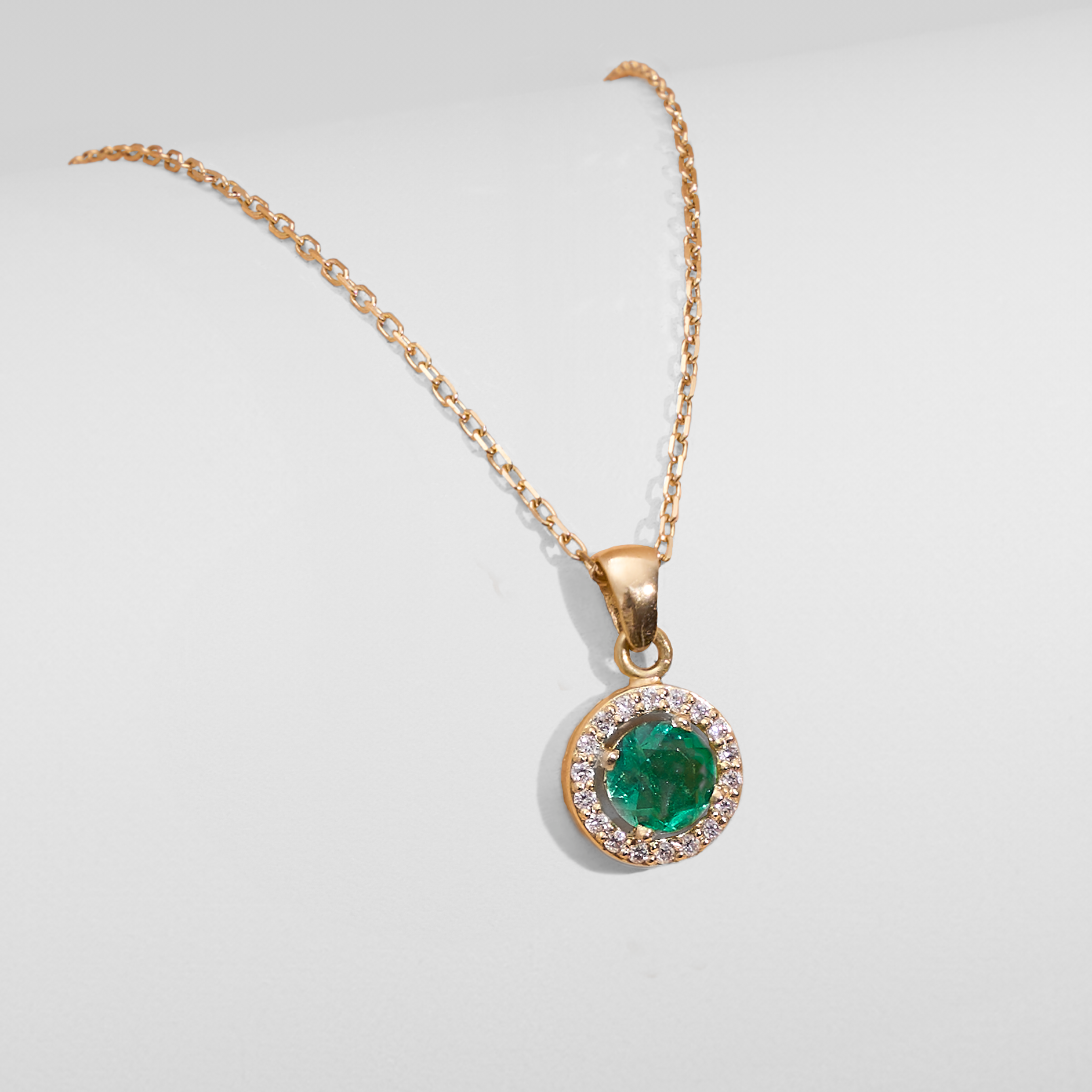 1 Natural Emerald – 0.45 carat weight, 18 Diamonds – 0.18 carat weight, 18K Yellow Gold * Chain included