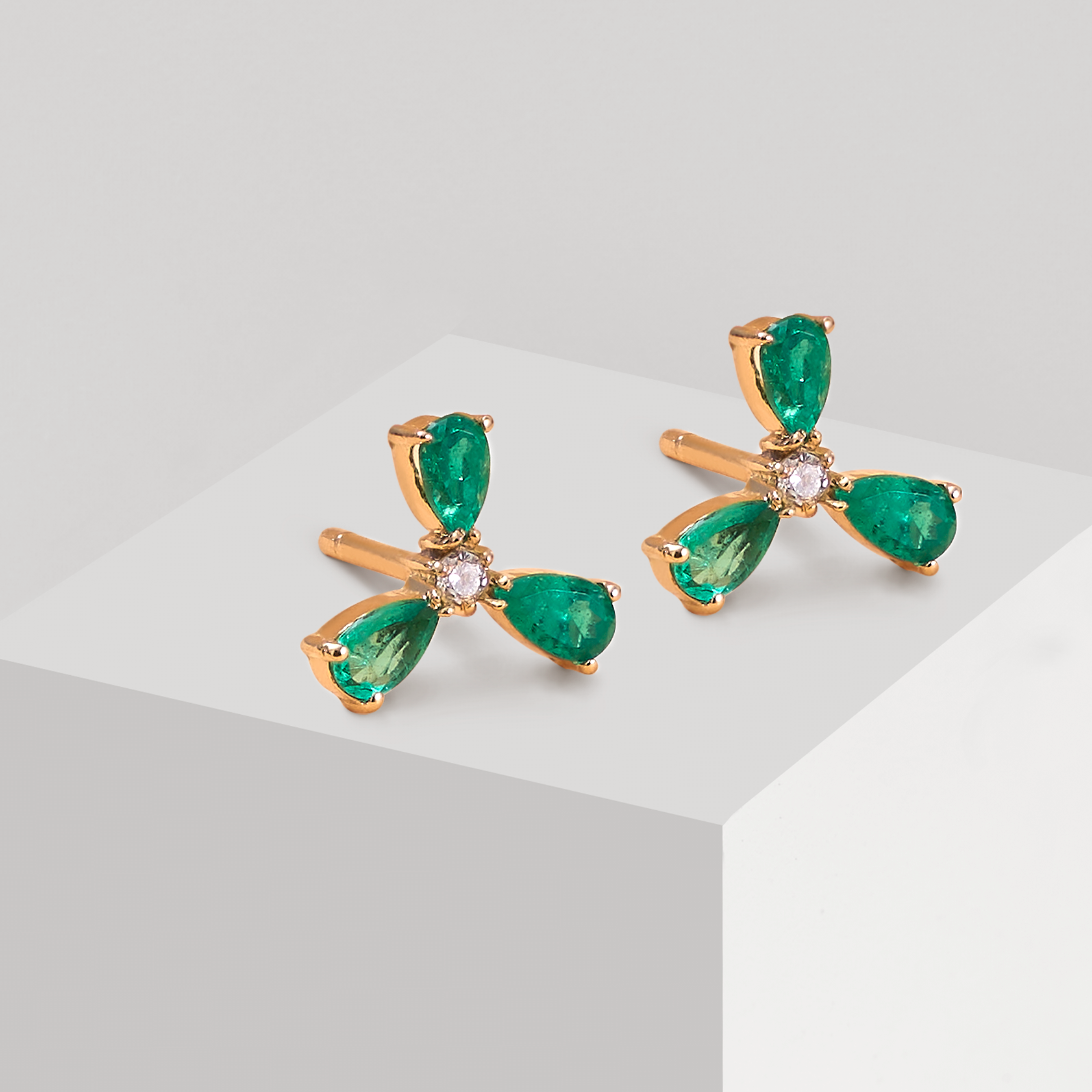 6 Natural Emeralds – 0.24 carat weight, 2 Diamonds – 0.04 ct weight, 18k Yellow Gold
