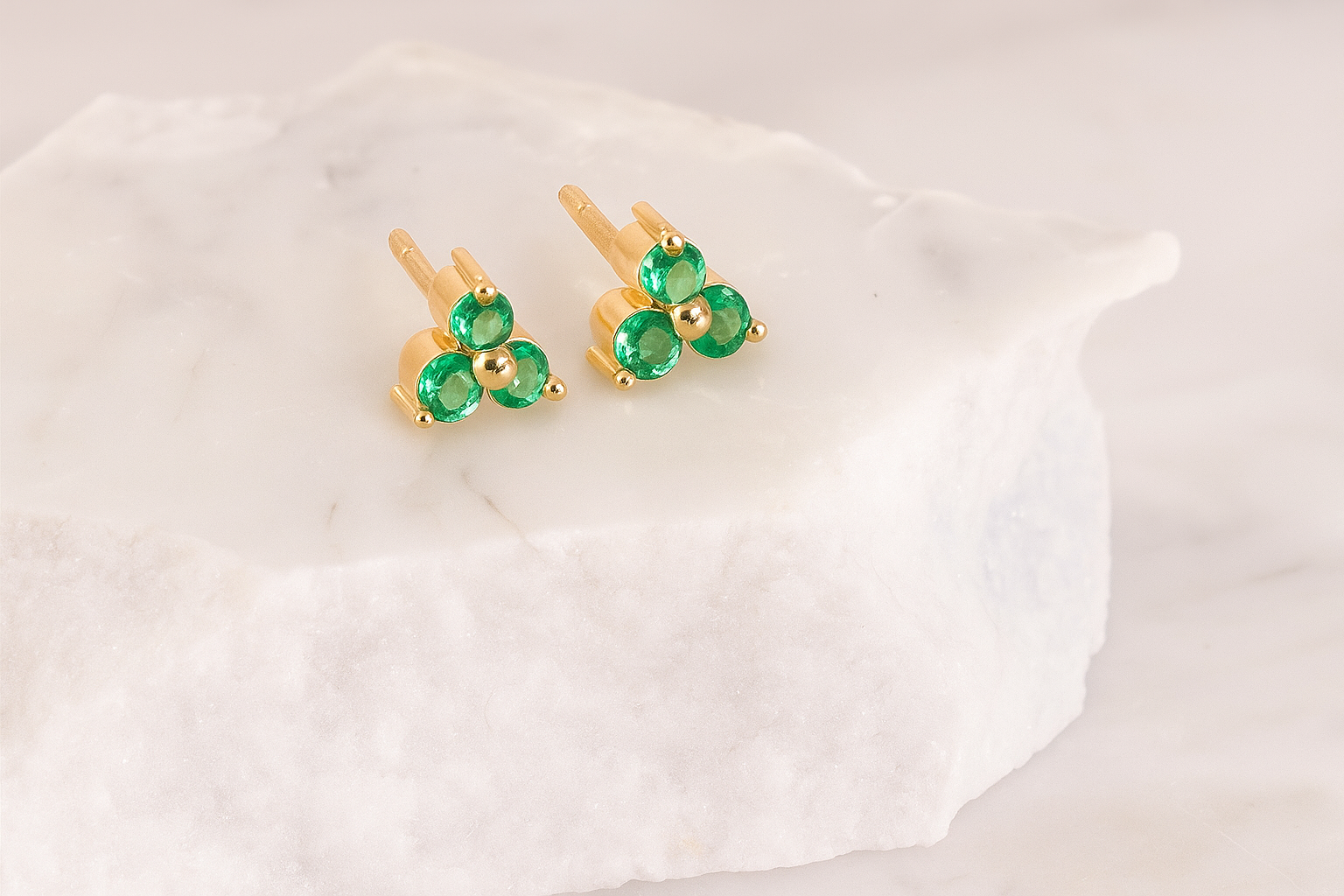6 Natural Emeralds – 0.15 carat weight, 18k Yellow Gold