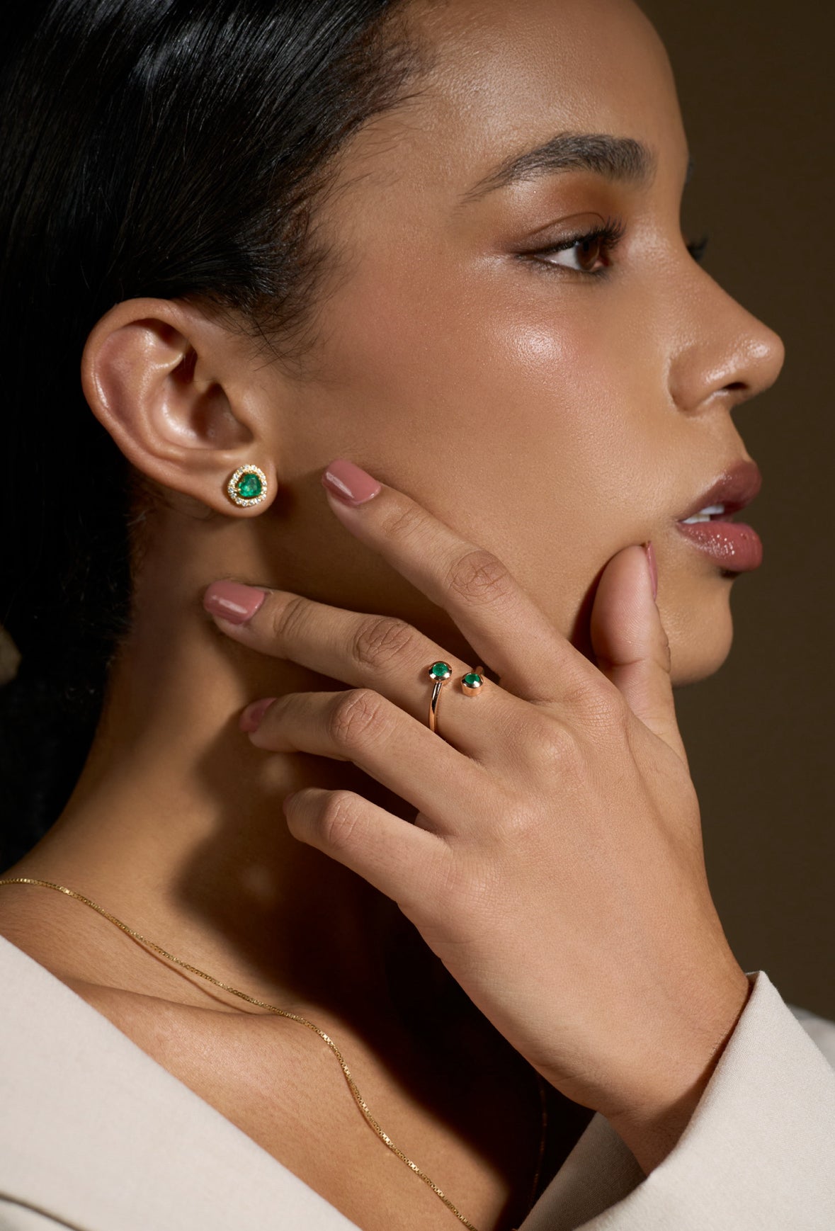 2 Natural Emeralds – 0.36 carat weight, 18K Yellow Gold