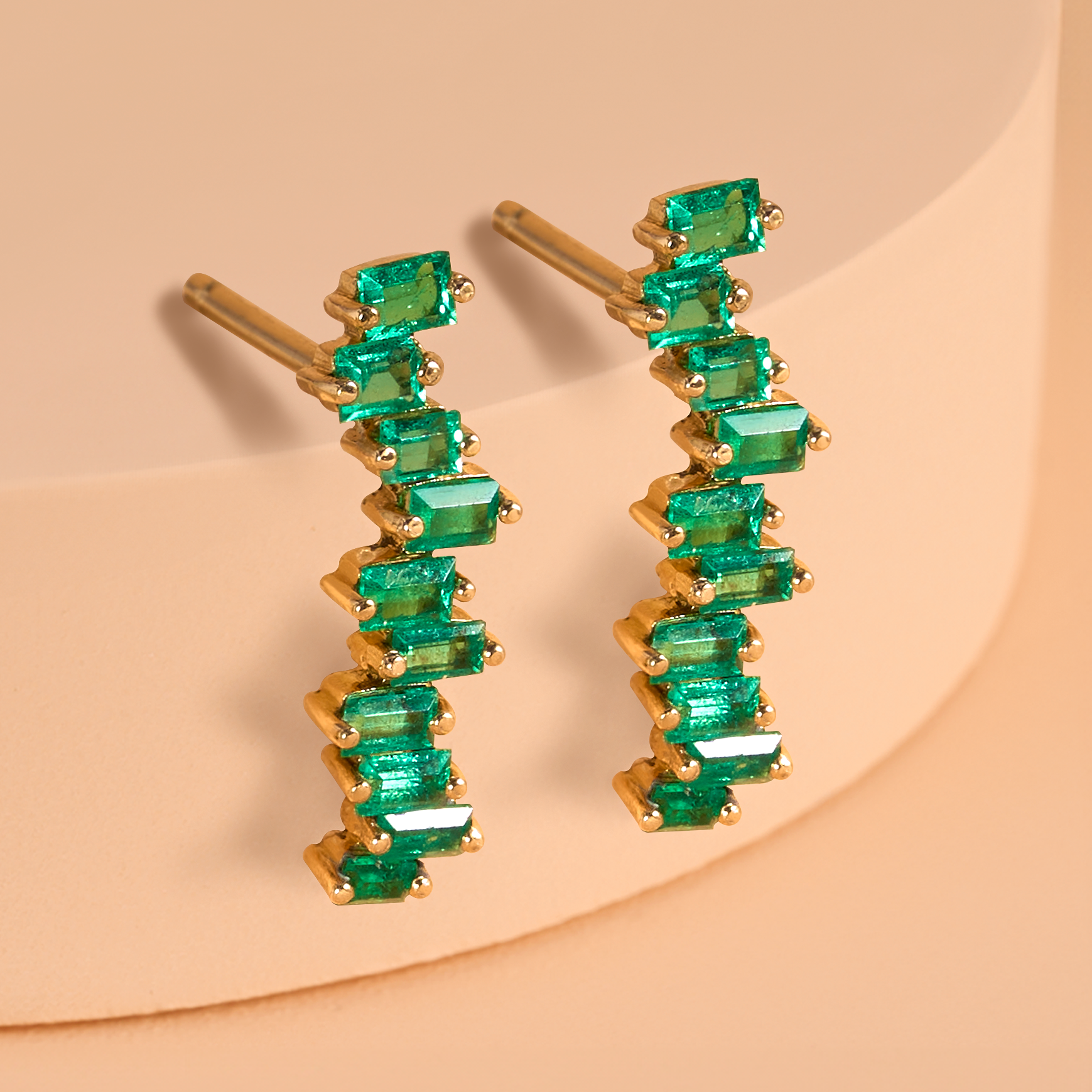14 Natural Emeralds – 0.70 carat weight, 18K Yellow Gold