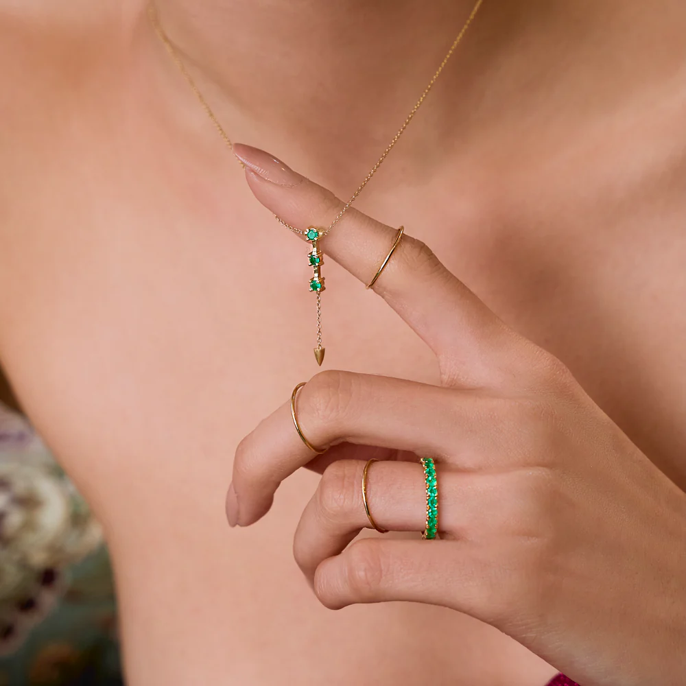 3 Emeralds – 0.15 carat weight, 18K Yellow Gold * Chain included