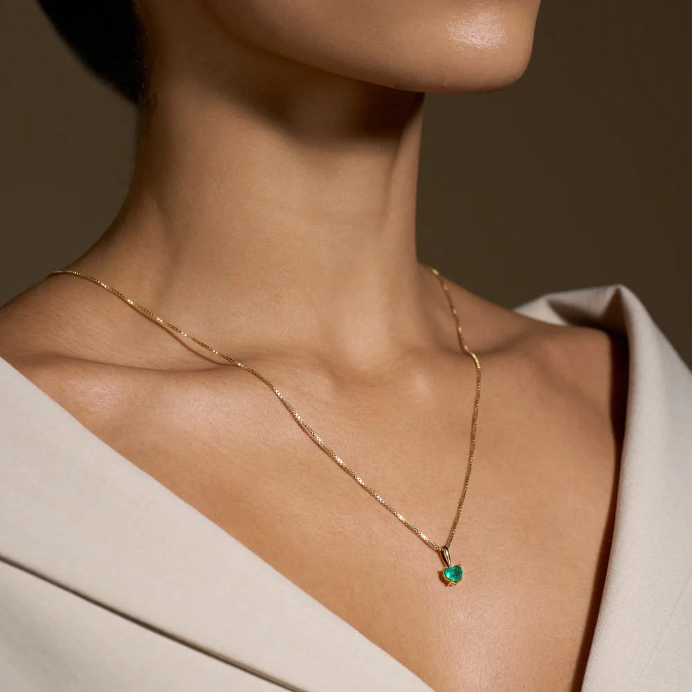1 Natural Emerald – 0.50 carat weight, 18K Yellow Gold * Chain included