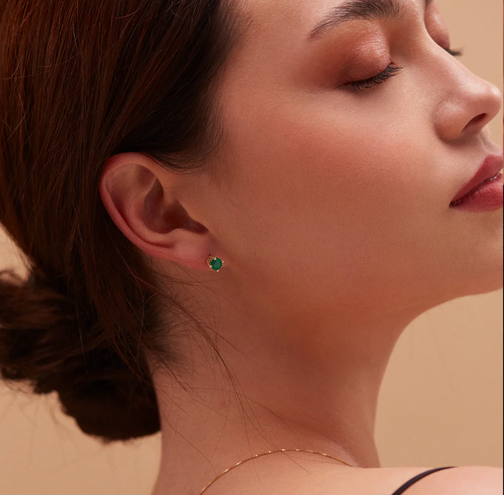 2 Natural Emeralds – 0.80 carat weight – 18K Yellow Gold (4.5mm)
