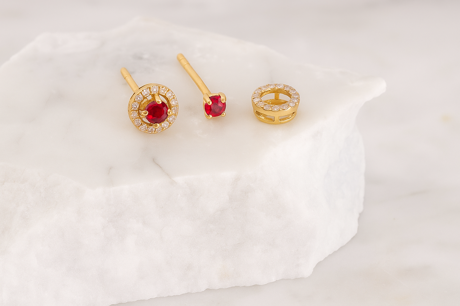 2 Ruby – 0.24 carat weight, 24 Diamonds – 0.24 carat weight, 18k Yellow Gold