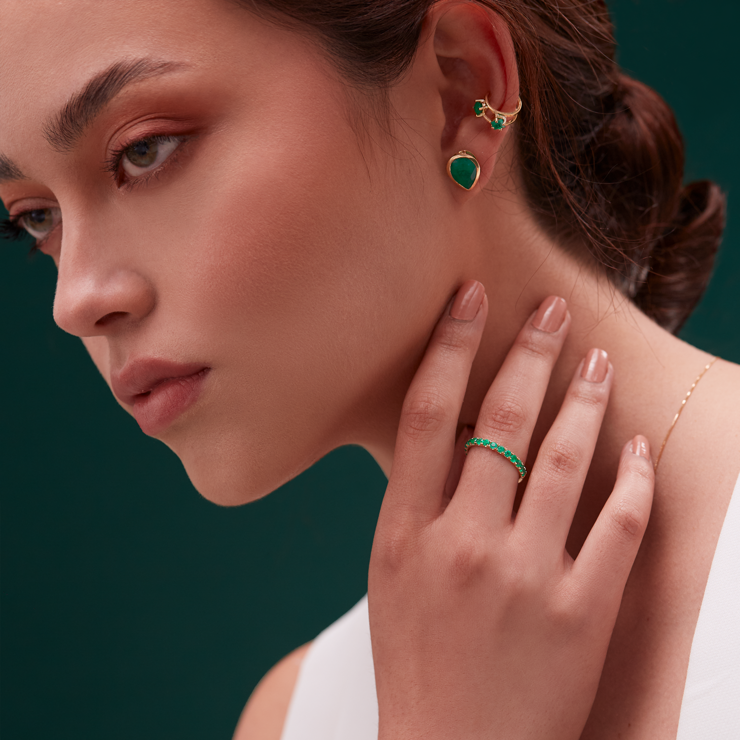 16 Natural Emeralds – 0.74 carat weight, 18K Yellow Gold