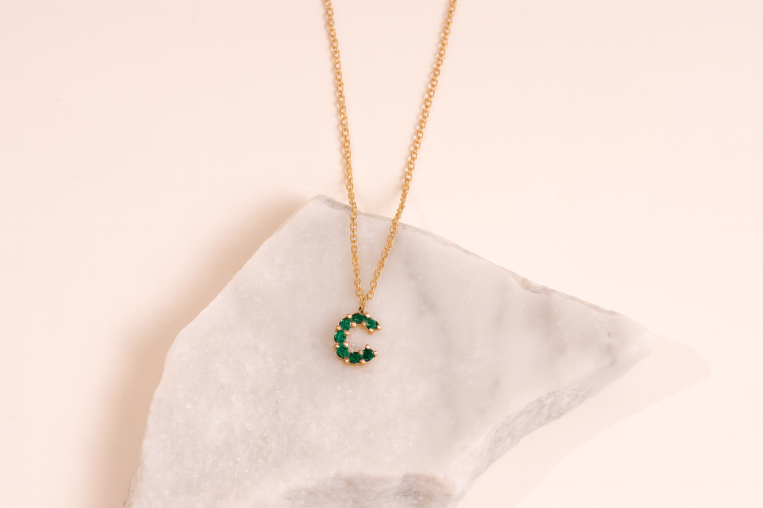 8 Emeralds – 0.17 carat weight, 18K Yellow Gold * Chain included
