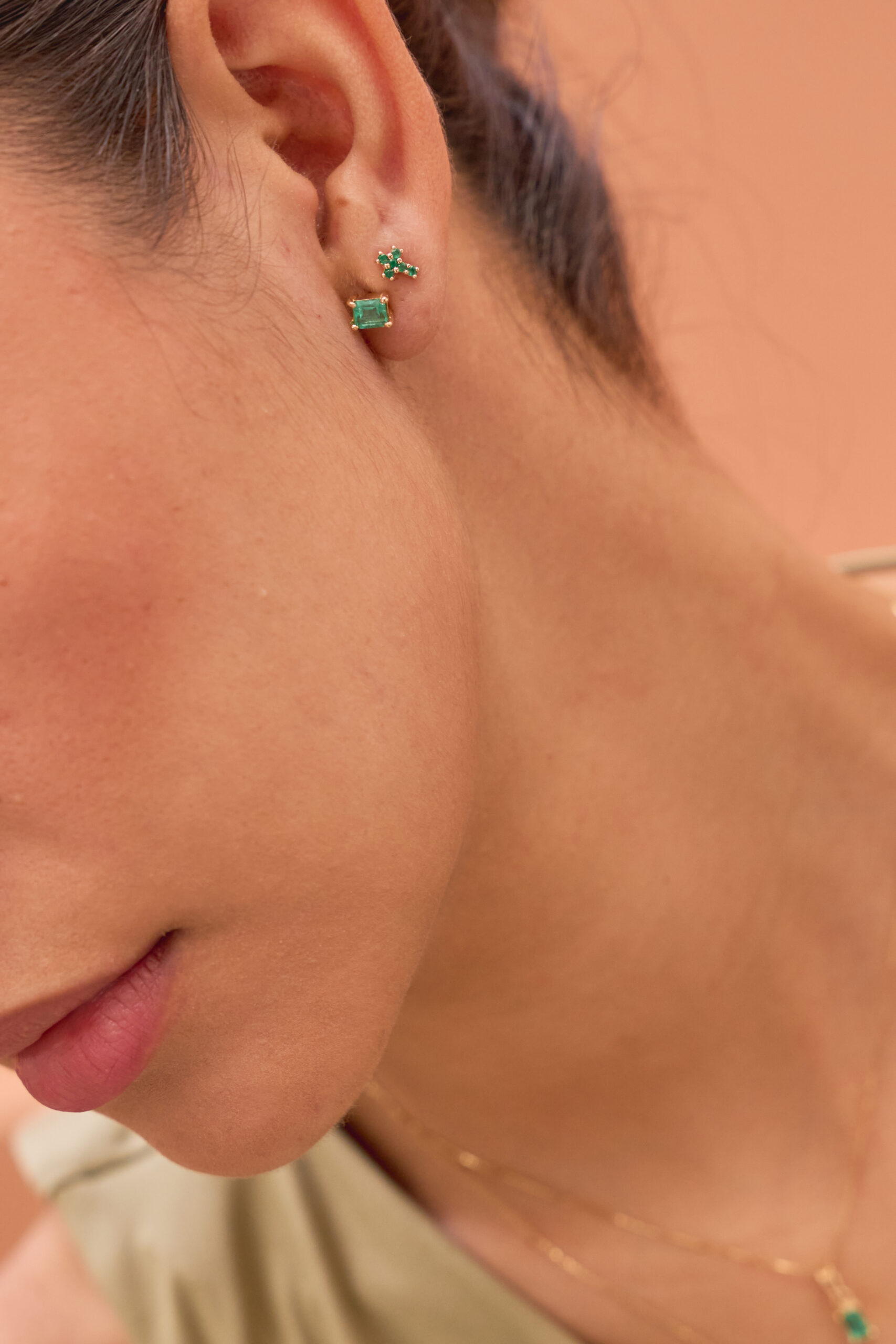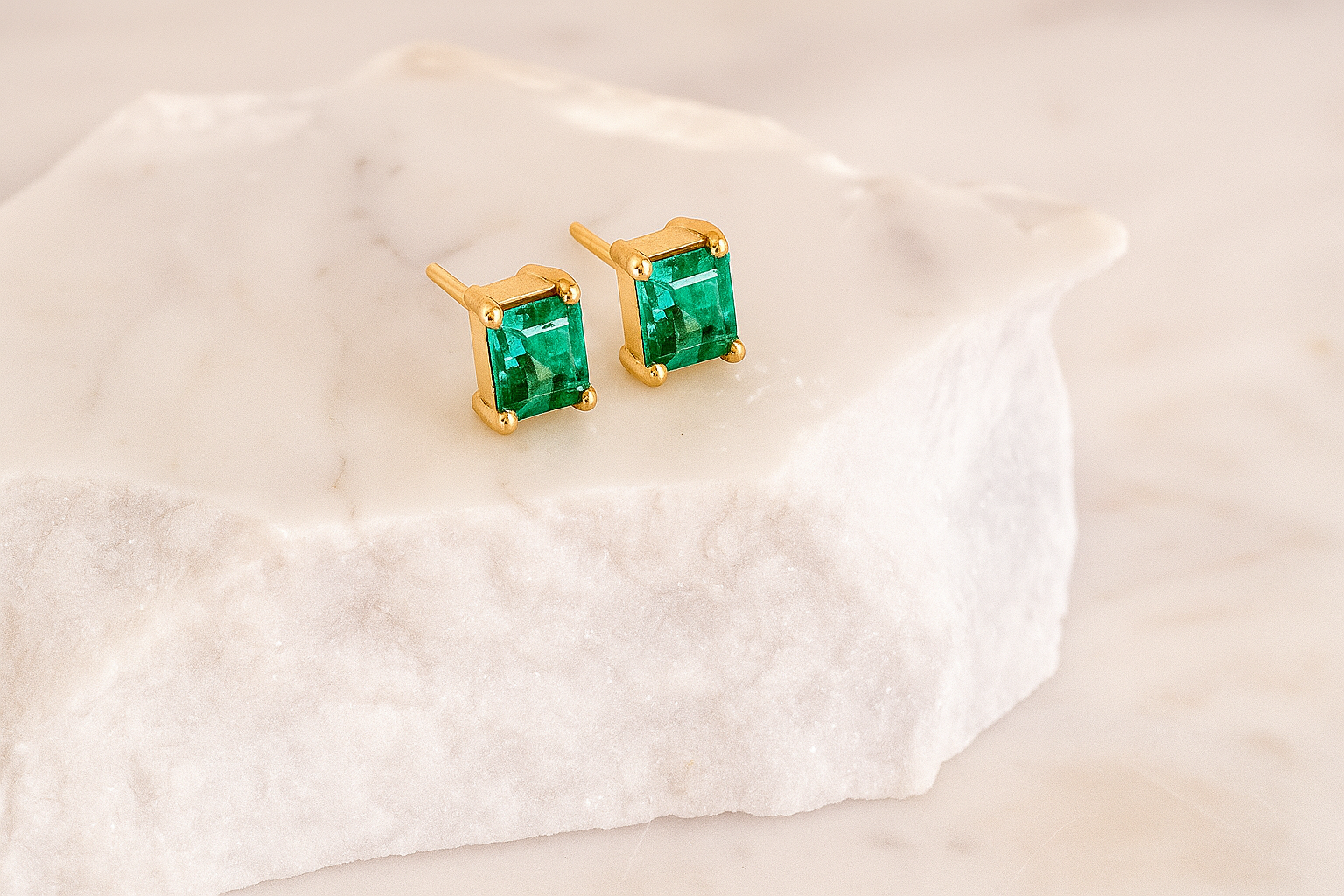 2 Natural Emeralds – 0.60 carat weight – 18k Yellow Gold