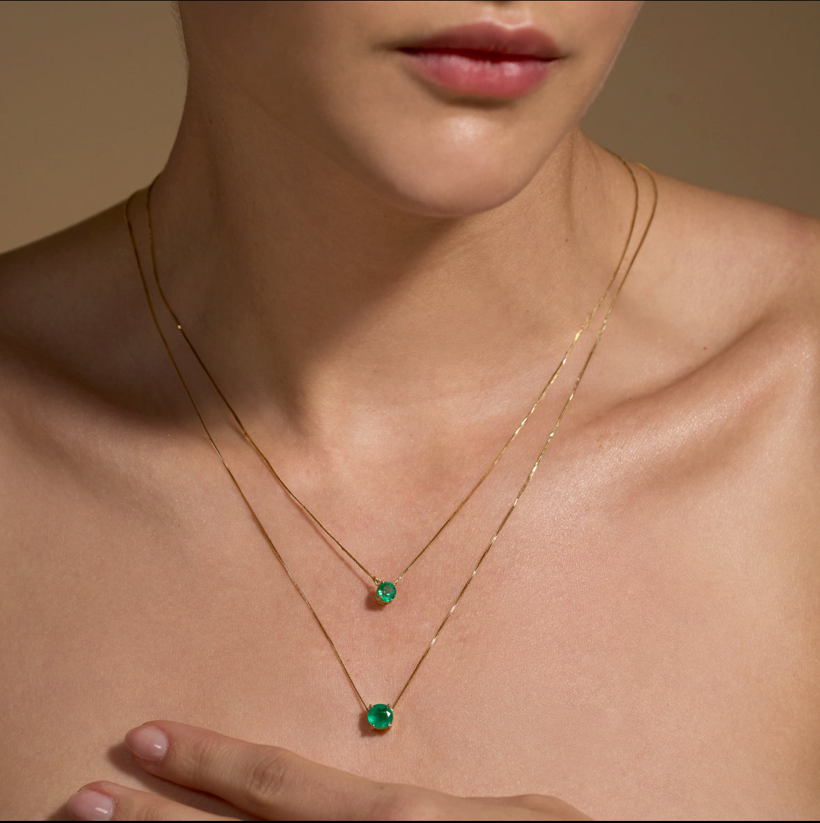 1 Natural Emerald – 0.55 carat weight, 18K Yellow Gold * Chain included