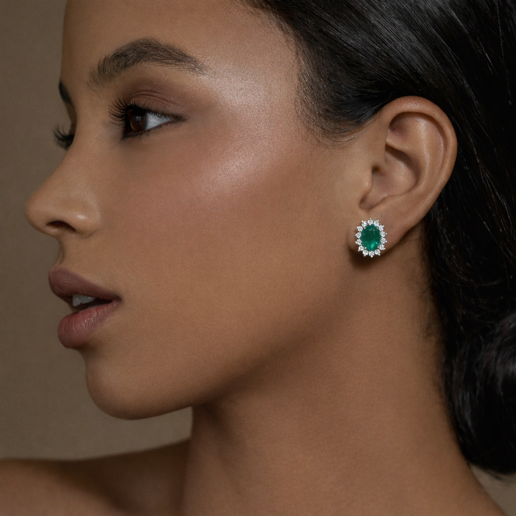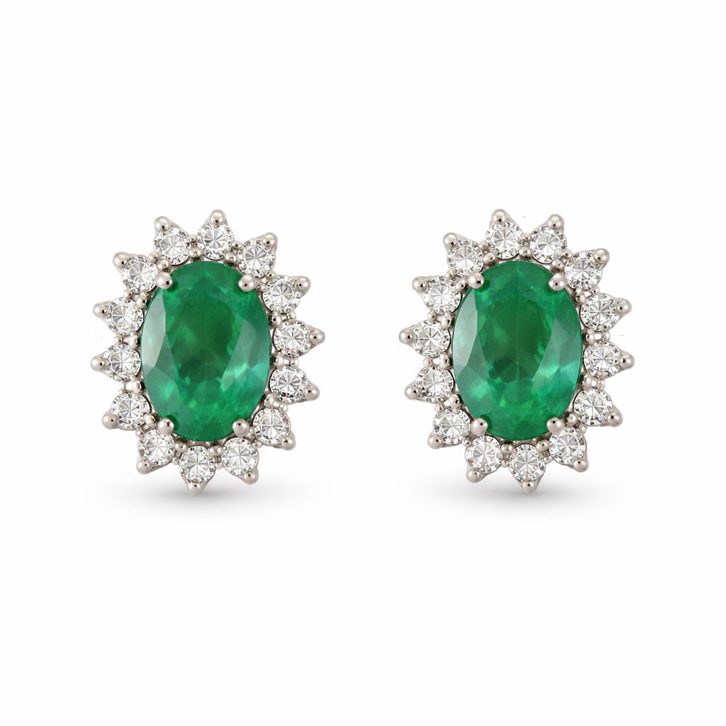 2 Natural Emeralds – .75 carat weight, 0.20 diamond carat weight, 18K Yellow Gold