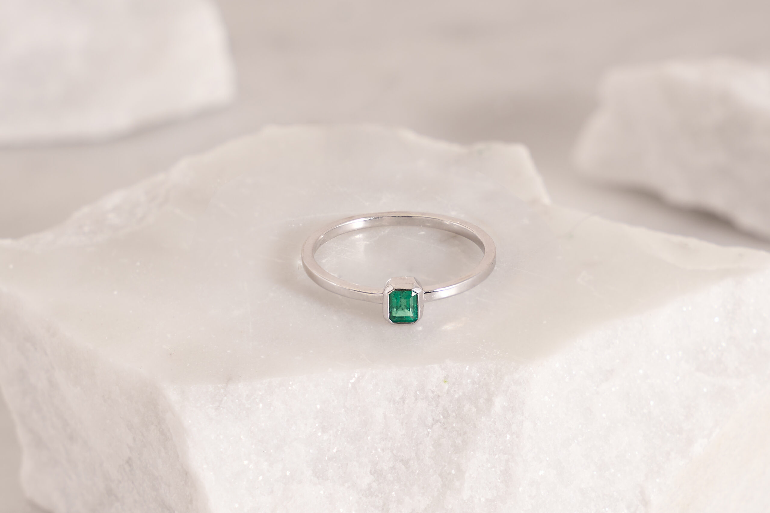 1 Natural Emerald – 0.34 carat weight, 18K White Gold