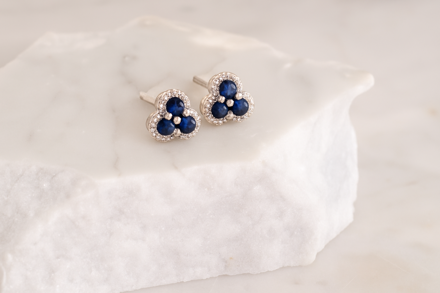 6 Natural Sapphire – 0.60 carat weight, 0.40 carat weight Diamonds 18k White Gold