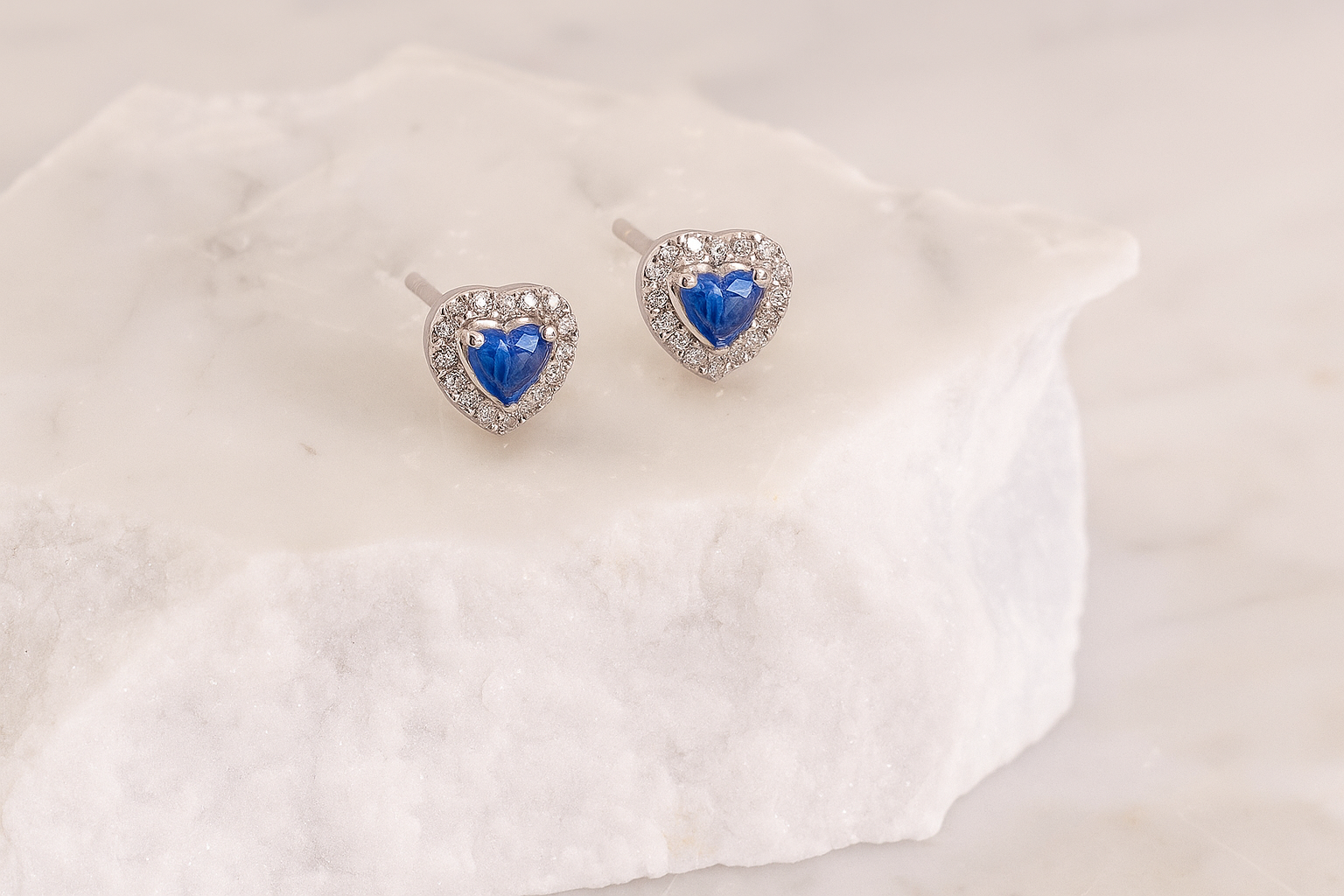 2 Natural Sapphire – 0.30 carat weight, 28 Diamonds – 0.28 carat weight, 18K White Gold