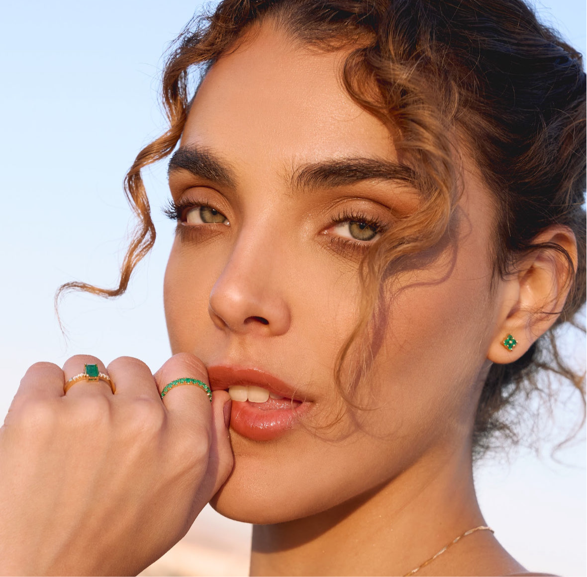 8 Natural Emeralds – 0.80 carat weight, 18K Yellow Gold