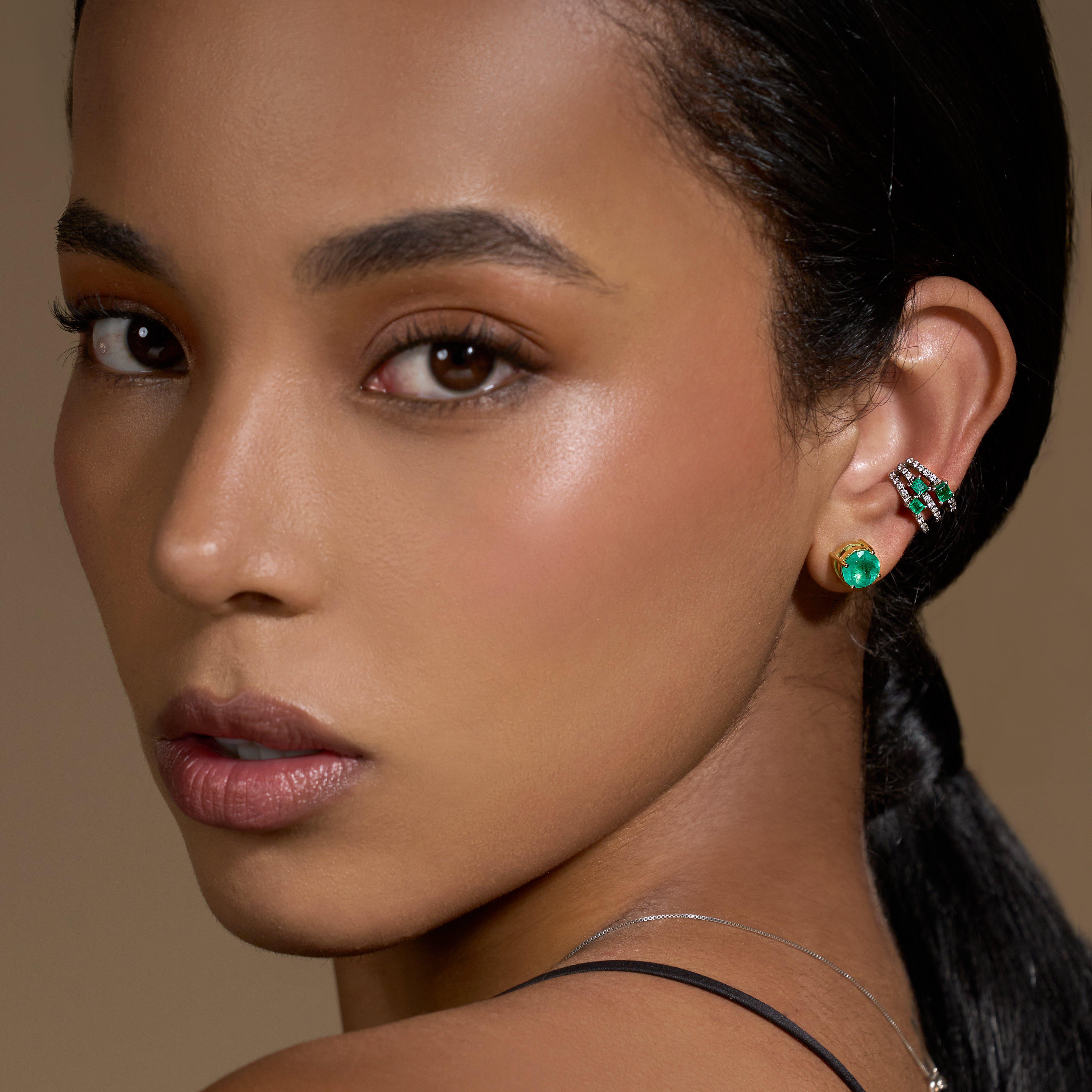 3 Natural Emeralds – 0.40 carat weight, 35 Diamonds – 0.35 carat weight, 18K White Gold