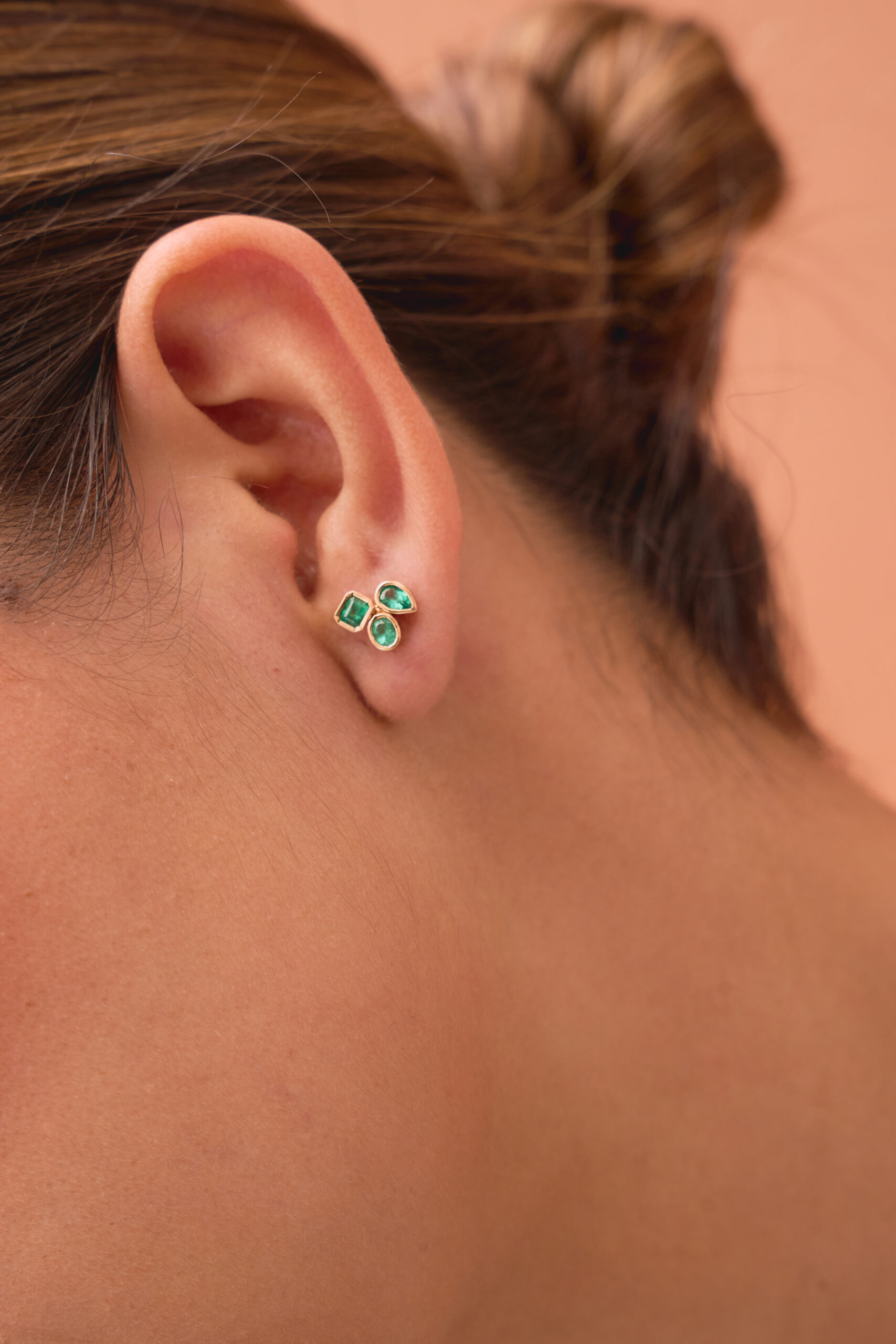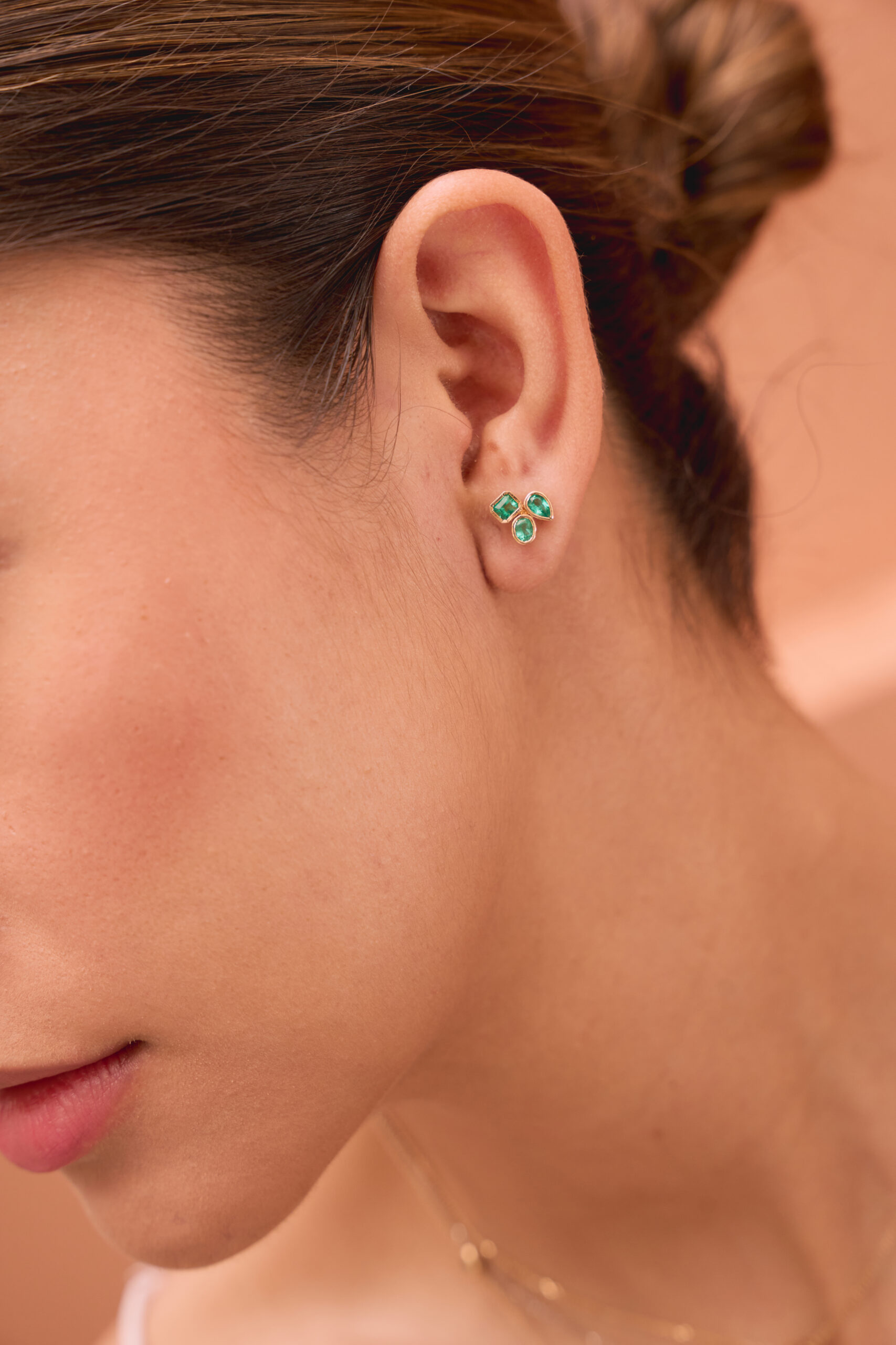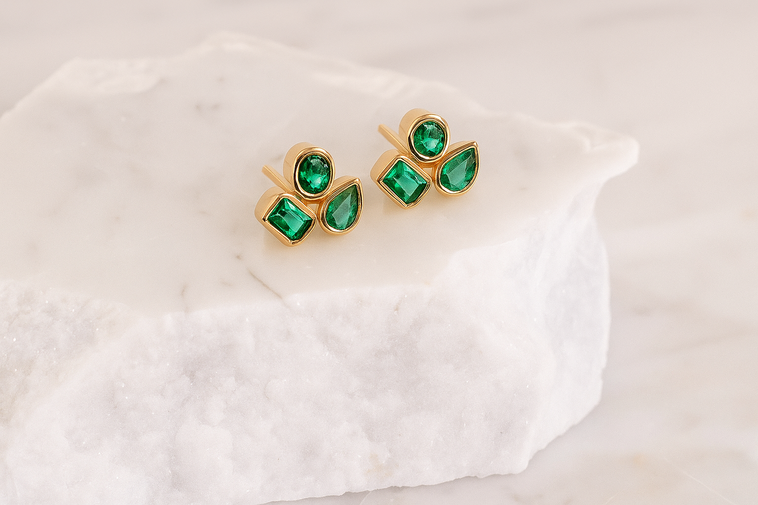 6 Natural Emeralds – 0.60 carat Weight, 18K Yellow Gold