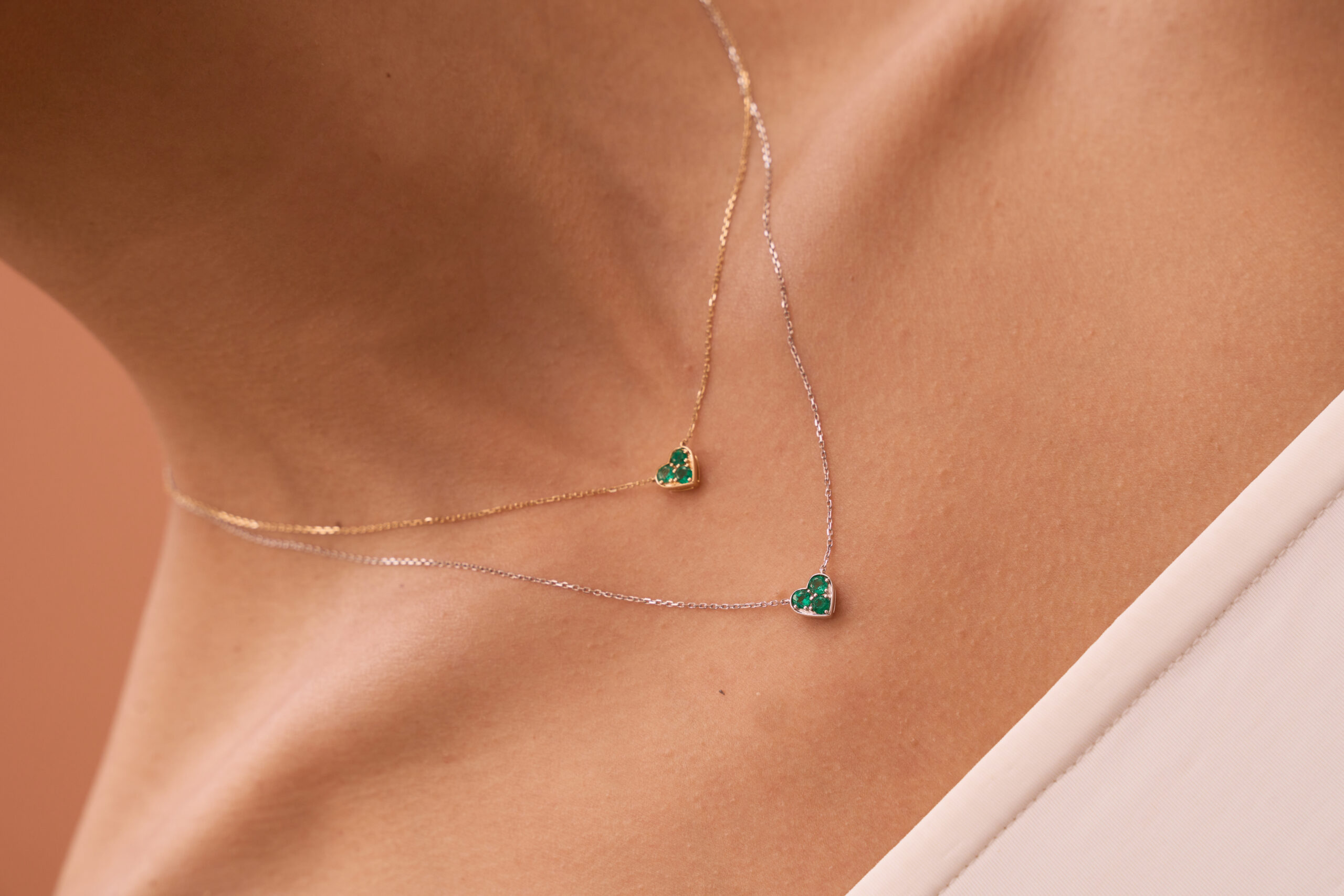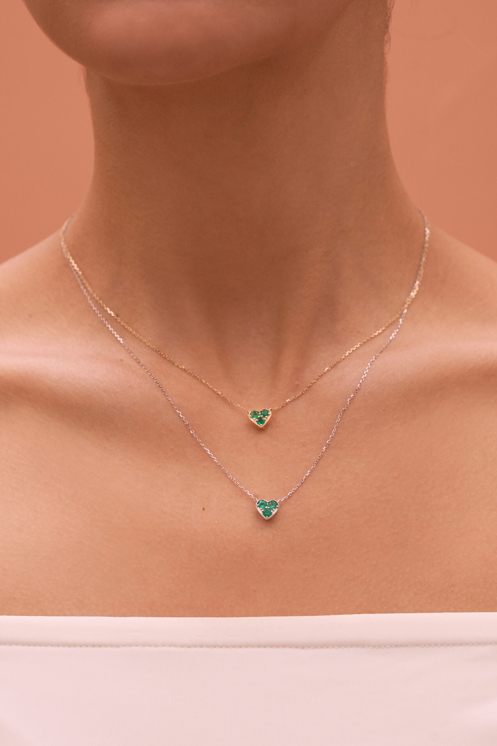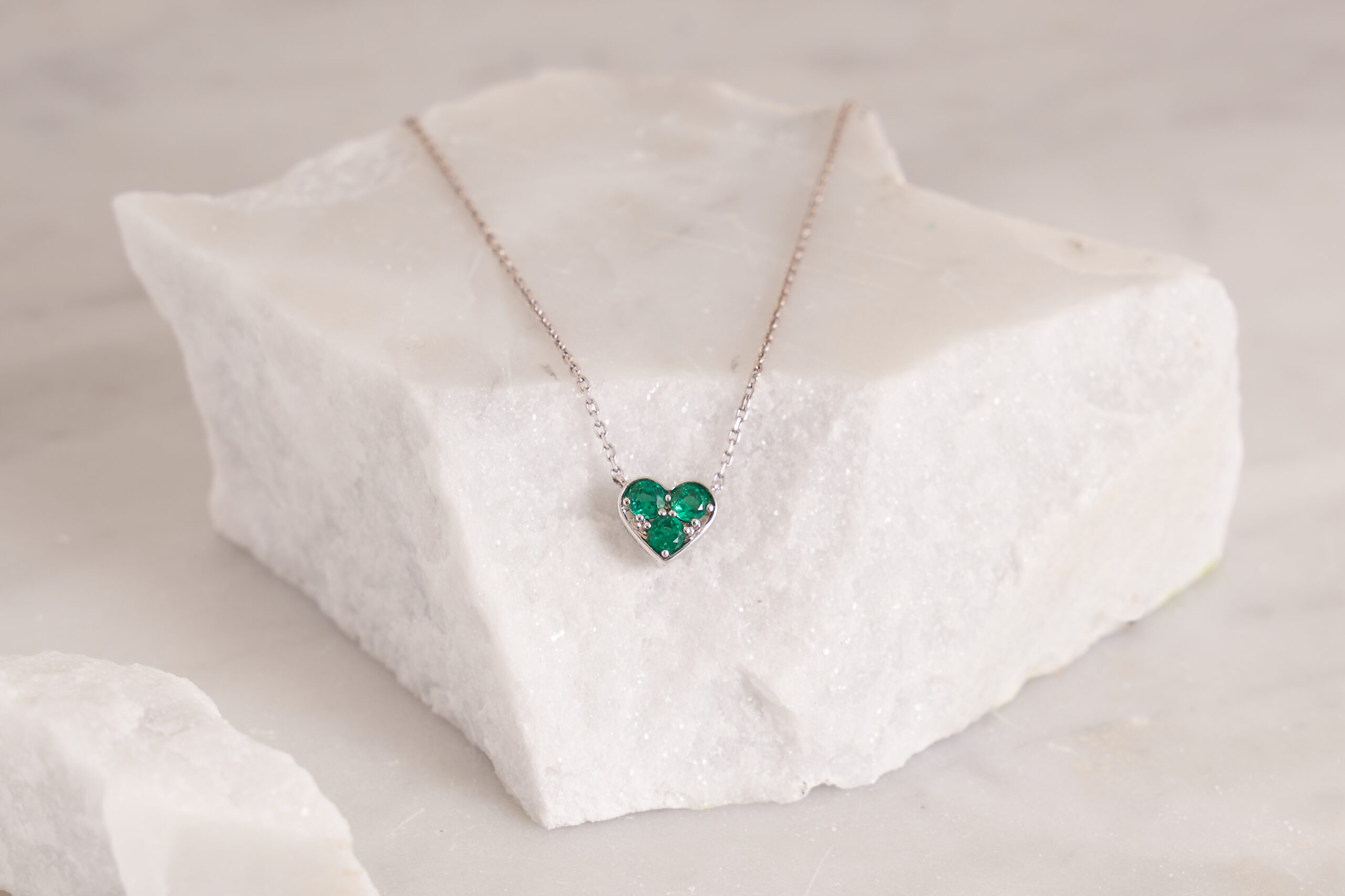 3 Natural Emeralds – 0.50 carat weight, 18K White Gold * Chain included