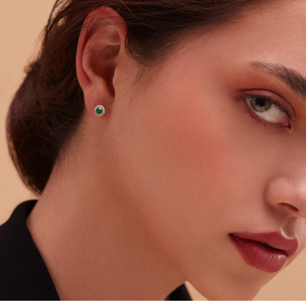 2 Natural Emeralds – 0.30 carat weight, 25 Diamonds – 0.25 caratt weight, 18k Yellow Gold